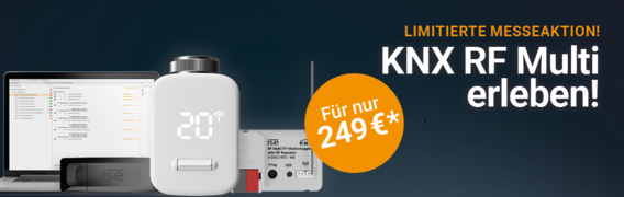 Als besonderes Highlight rund um das KNX RF Multi Sortiment haben wir eine spezielle Messe-Aktion für KNX Verarbeiter! Nutzen Sie die einmalige Gelegenheit, KNX RF Multi zu erleben. Informieren Sie sich über konkrete Einsatzmöglichkeiten und sichern Sie sich Ihr Einsteigerpaket zum exklusiven Aktionspreis, der sich rechnet. Wir haben dabei an alles gedacht, was Sie für den Einstieg in den KNX Funk brauchen, inkl. Werkzeug für Ihre perfekte Funkinstallation.